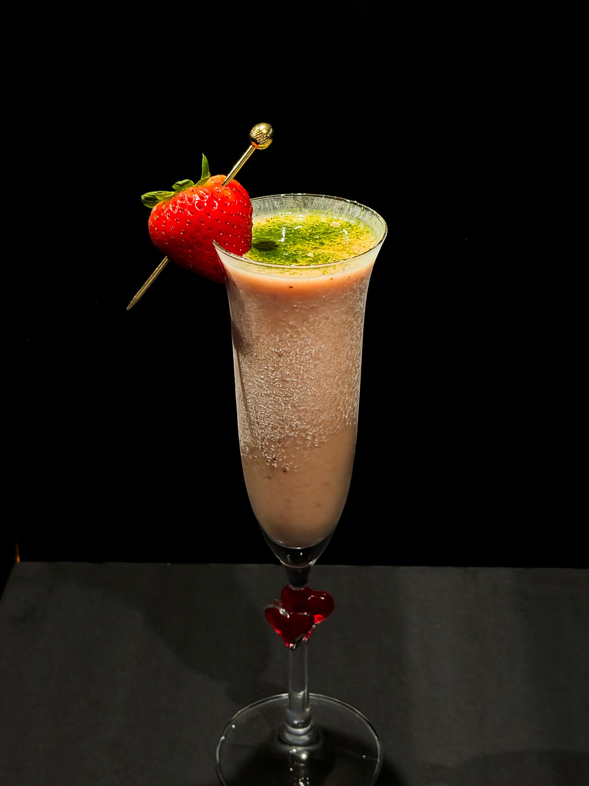白あんのなめらかさと、いちごのフレッシュな酸味が調和したデザートモクテル。豆乳のコクが全体を包み、やさしい余韻を残します。