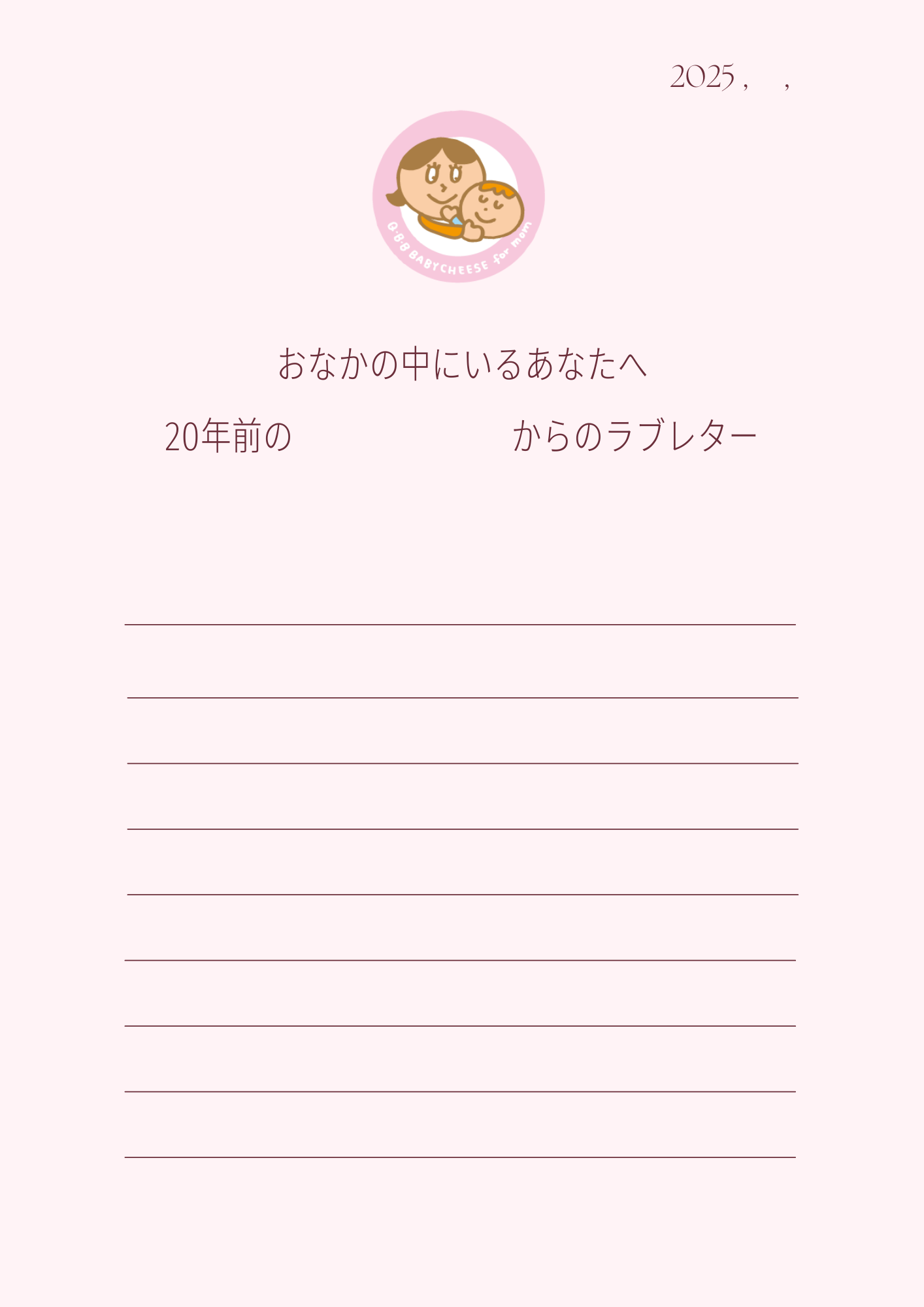 これは、おなかの中にいる赤ちゃんへ、20年後の未来に宛てて手紙を書いていただくもの。
