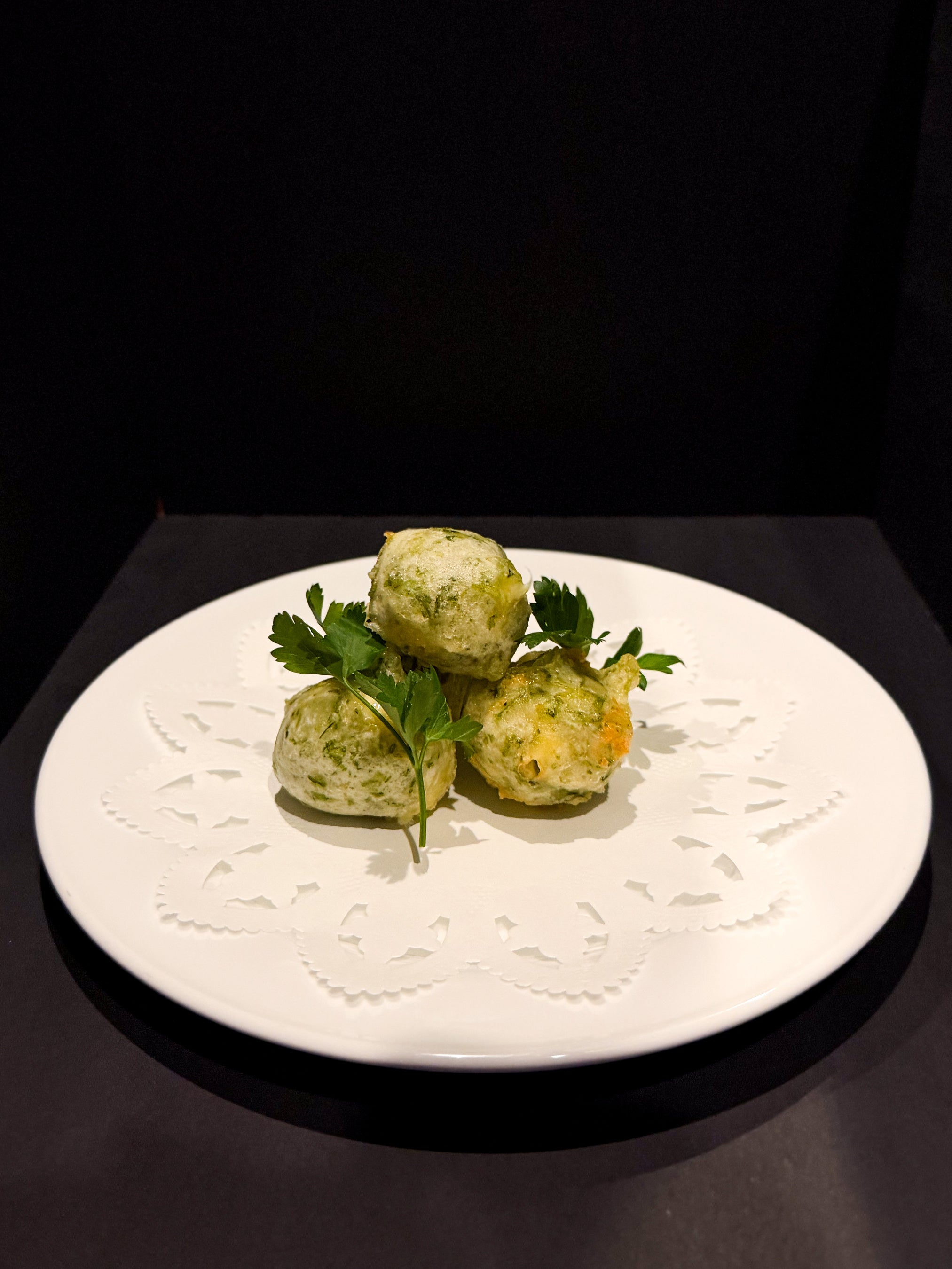 青のりの香ばしさがふわりと広がるひと口サイズの揚げピザ。