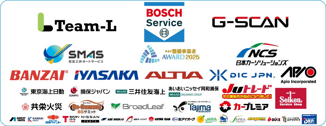 ボッシュカーサービス/株式会社インターサポート/株式会社チームエル/住友三井オートサービス株式会社/日本カーソリューションズ株式会社/株式会社バンザイ/株式会社イヤサカ/株式会社アルティア/ディーアイシージャパン株式会社/アピオ株式会社/東京海上日動火災保険株式会社/損害保険ジャパン株式会社/あいおいニッセイ同和損害保険株式会社/共栄火災海上保険株式会社/三井住友海上火災保険株式会社/BSサミット事業協同組合/株式会社ブロードリーフ/株式会社タジマ/株式会社JUコーポレーション/明治産業株式会社/プレミアグループ株式会社/アネスト岩田株式会社/株式会社オリコオートリース/関西ペイント株式会社/ダックス株式会社/株式会社ジャプラ/トヨタモビリティパーツ株式会社/日産自動車株式会社/日本ペイント株式会社/株式会社速太郎本部/株式会社阿部商会/AIRオートクラブ/全日本ロータス同友会/株式会社アイオーク/株式会社JARA/株式会社ビッグウェーブ/DRPネットワーク株式会社 (順不同)