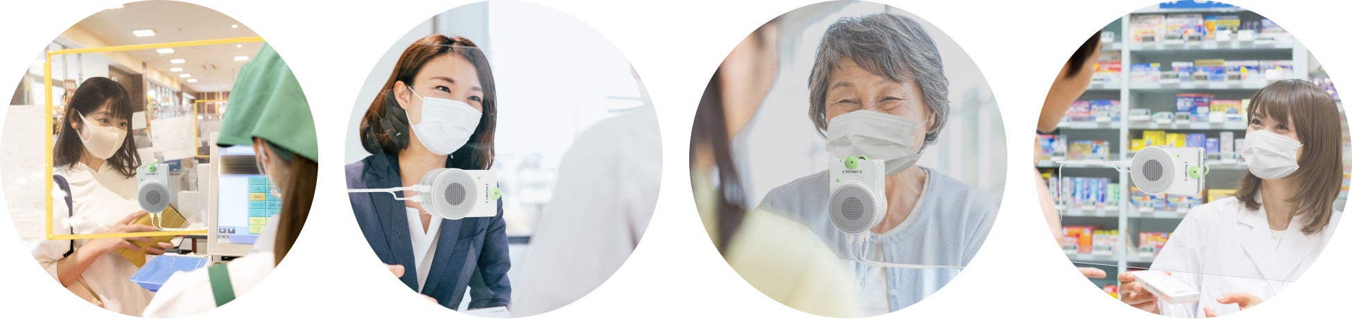 withコロナの時代、スーパーのレジや病院の受付等様々な場所でビニールシートやアクリル板越しに会話をすることが日常となり、お互いの声が「聞き取りづらい」ストレスが増えています。聞こえサポート「kicoeri(キコエリ)」は、そのような「聞き取りづらさ」を解決し、「音のバリアフリー」を実現するために開発した「世界初(※)」の第5世代パーテーション取付型双方向会話支援システムです。