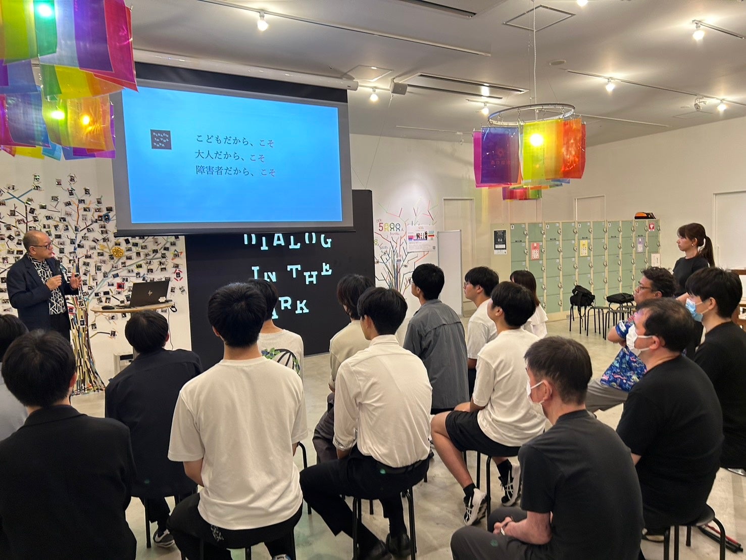 続いて、ダイアログ・イン・ザ・ダーク・ジャパンのファウンダー志村真介氏に「ダイバーシティ&インクルージョン」について講話いただきました。多様性を受け入れ、障害者だからこそできることを模索するなど、発想の転換が社会変革に繋がることを知ることができました。また、以前「対話の森」に訪問されたこともある藤井輝夫氏が東京大学総長に就任された時のメッセージも紹介いただき、未知なるものとの対話の重要性を改めて認識するきっかけとなりました。