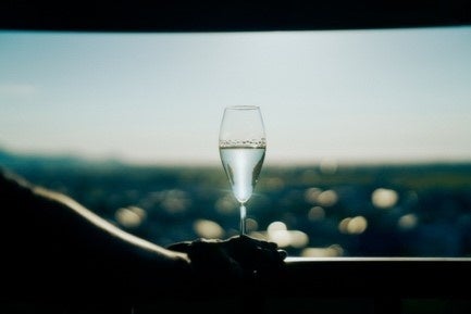 天守閣最上階でたのしむ食前酒。普段は飲食禁止の天守閣最上階で、この日しか