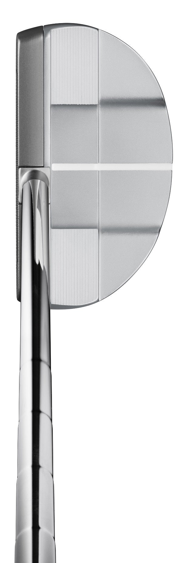 「Silver-Blade αⅡ」のフェースには、新たに開発した樹脂製の「“α”インサート」を採用することで、打感はソフトでありながら適度な打ちごたえを実現しています。ヘッドのブレードとボディに異なる素材を採用することで比重差を生み出し、深重心、高慣性モーメント設計を可能にしています。また、ヘッドで使用しているシルバーカラーはブレードとボディでコントラストをつけることでアライメント効果を生み、ターゲットにまっすぐ構えやすいデザインにしました。フェースやボディは一部にCNC ミルド加工を施すなど細部にまでこだわった仕上げとしたほか、グリップは握り心地が良く安定感を生み出すミッドサイズグリップを新たに採用しています。