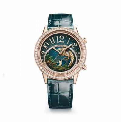 喜び溢れる自然の歌。伝統的な東洋のシンボリズムに深く浸透しているその姿を、タイム レスな技術を誇るジャガー・ルクルト メティエ・ラール®工房によるラッカー仕上げ、細 密画、ジェムセッティングにより表現します。