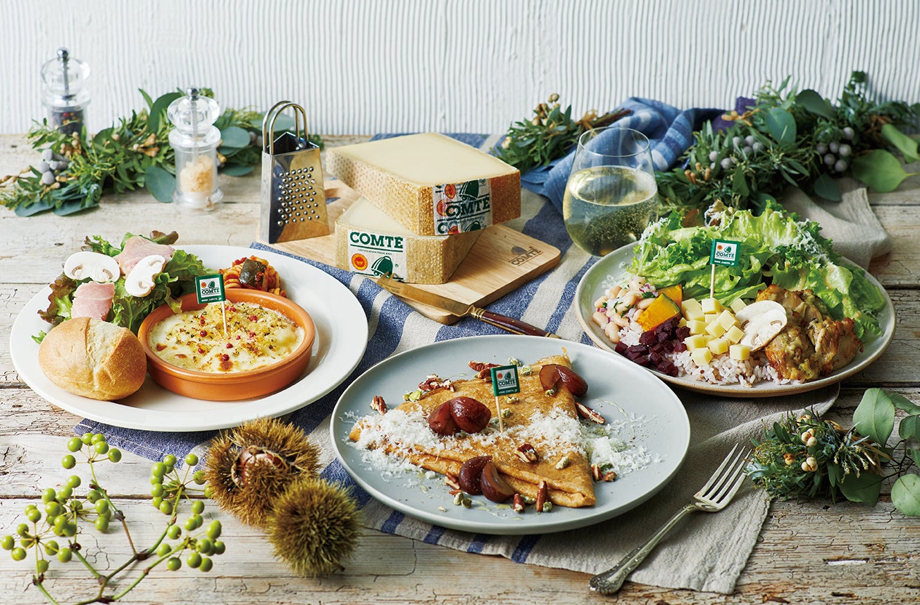 「コンテ」はフランスを代表する熟成ハードチーズ。熟成度合いや作られた季節などで異なる多様な風味を持つのが特徴です。フランスで大人気のコンテチーズの魅力を存分に楽しめる期間限定の下記の特別メニューが店舗にて提供されます。