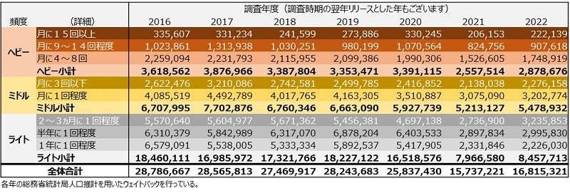 出典:日本サウナ・温冷浴総合研究所 「サウナ愛好家推計(人口)」(2016~2022)