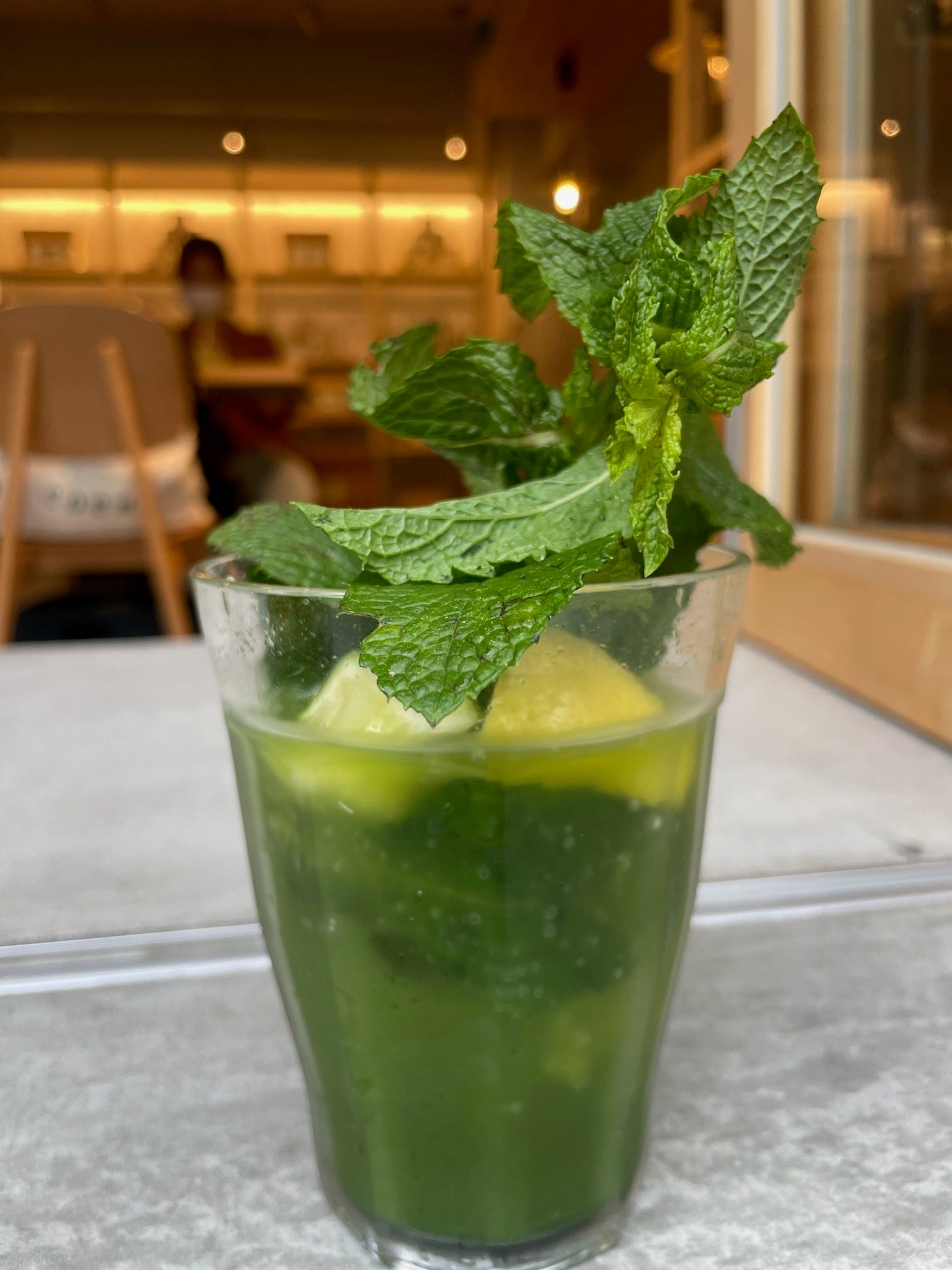 ・抹茶とミントのモクテル(甘味あり抹茶+炭酸水)