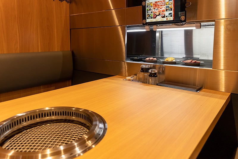 常時約110種類以上の豊富なメニュー構成。様々な部位の焼肉やサイドメニューを少しずつ食べたいお客様のニーズを満たします。注文は各テーブルのタッチパネルから行い、各種焼肉を載せた小皿が客席沿いに設置された「廻転レーン」から到着、お客様がお好きなメニューを注文できる半セルフサービスタイプのレストランです。