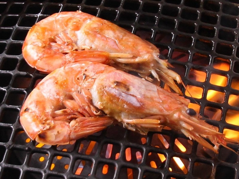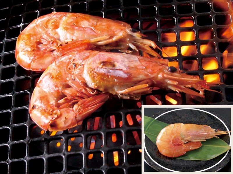 赤エビの浜焼き 1皿200円(税込220円) ※同2匹倍盛り390円(税込429円)