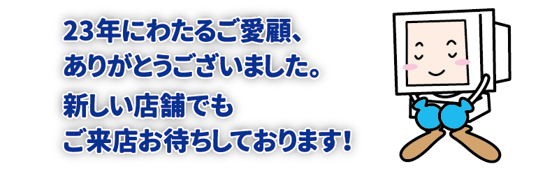 現在の店舗における営業は2023年4月16日(日)をもって終了いたします。