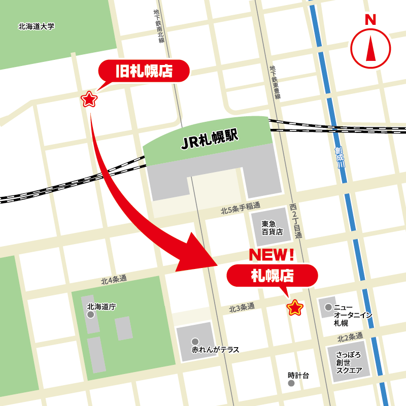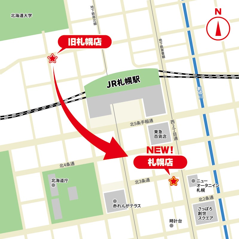 新しい店舗は大通公園や時計台からほど近い北3条通沿いにオープンいたします。
