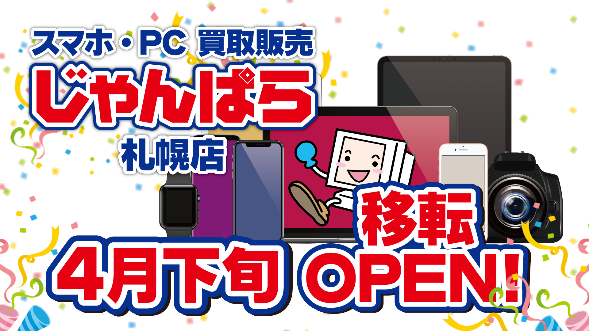株式会社じゃんぱら(本社:東京都千代田区、代表取締役:小林 直純)が展開するスマホ・パソコンの買取・販売「じゃんぱら」は、「じゃんぱら札幌店」を移転し、2023年4月下旬にリニューアルオープンいたします。