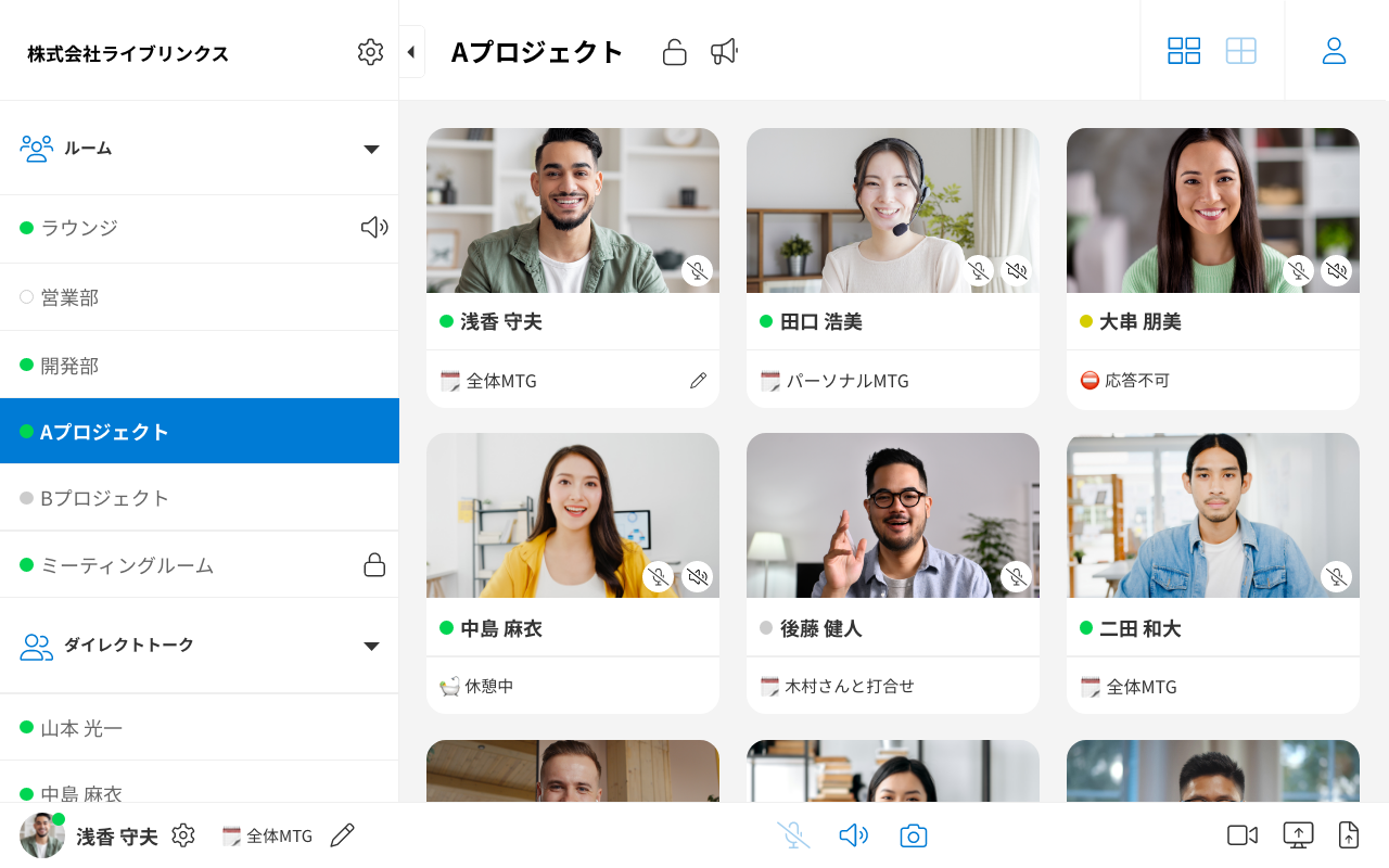「LIVEWORK」は「リモートワークにオフィスの臨場感とチームの一体感を。」をコンセプトに、チームコラボレーションを促進するバーチャルオフィスツールです。「LIVEWORK」独自の「ワーカービュー機能」や「仮想ルーム機能」が、オフィスの自席から見えるいつもの光景・顔ぶれをオンライン上で再現します。また、「インスタントトーク機能」「プレゼンス機能」「ステータス機能」「画面共有機能」「パーソナルタグ機能」によって、オフィスでのリアルなコミュニケーションに引けを取らない、簡単でスピード感のあるコミュニケーションが可能となり、チームコラボレーションが加速します。