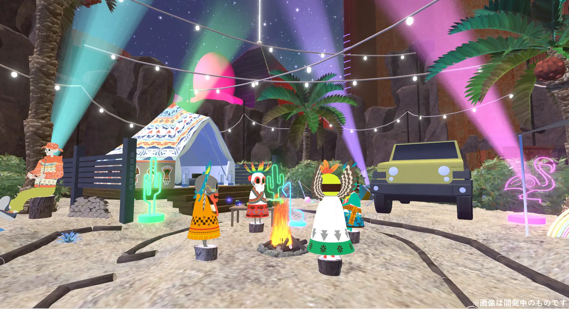 My Vketとコラボ!キャンプ場風のルームテンプレートが登場!パラリアルラスベガス内で、本格的なキャンプ体験ができる特別なブースを展開、バーチャルマーケット初、楽器演奏ができる簡易演奏システムも実装