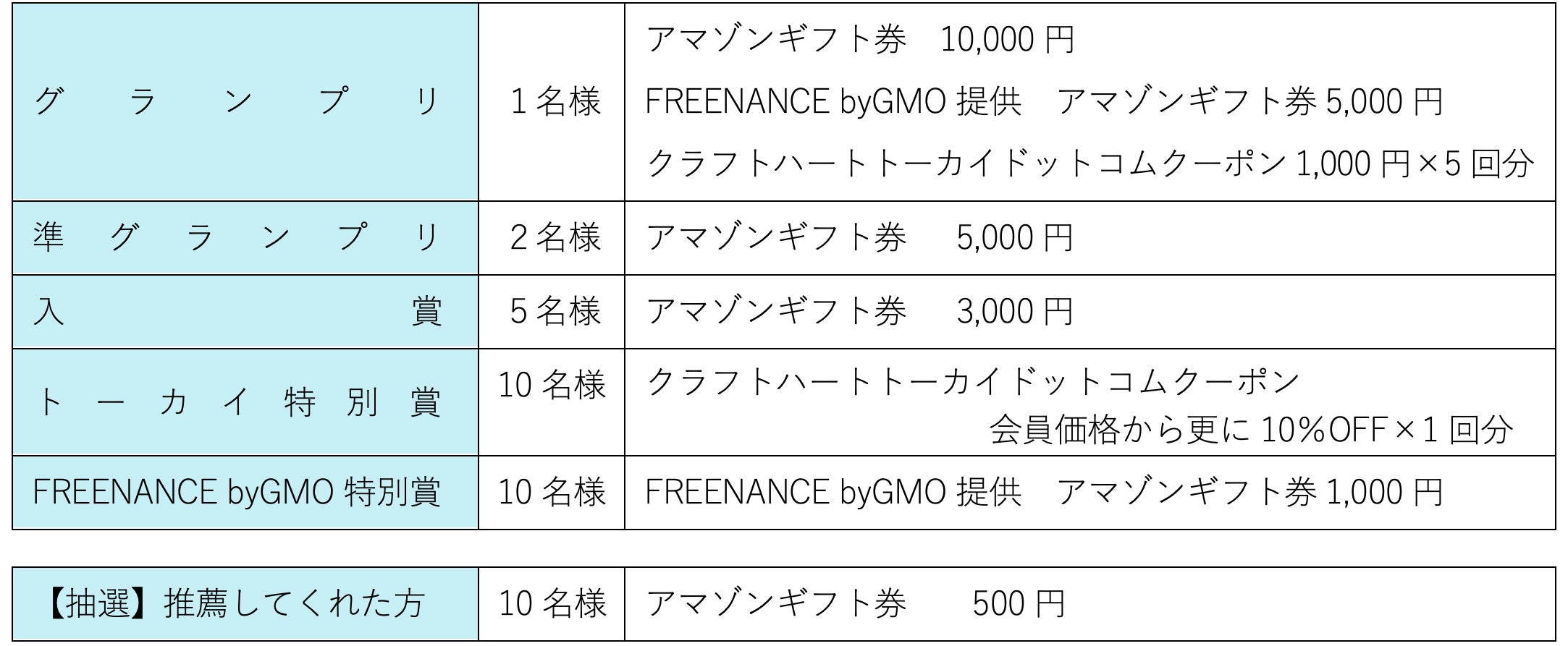 *FREENANCE byGMOは、ハンドメイド作家の活躍を支援する本グランプリの趣旨に賛同し、協賛しています。