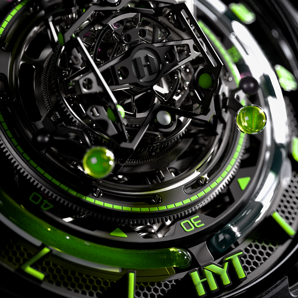 流体機械式高級時計ブランド新生『HYT』の腕時計は、時計・医療・化学・物理学・宇宙工学等のスペシャリストが結集し、クロノードやルノー・エ・パピによる、最高峰の時計技術と最先端医療技術、さらにNASAが開発した宇宙工学の部品などとも組み合わせ、開発されています。