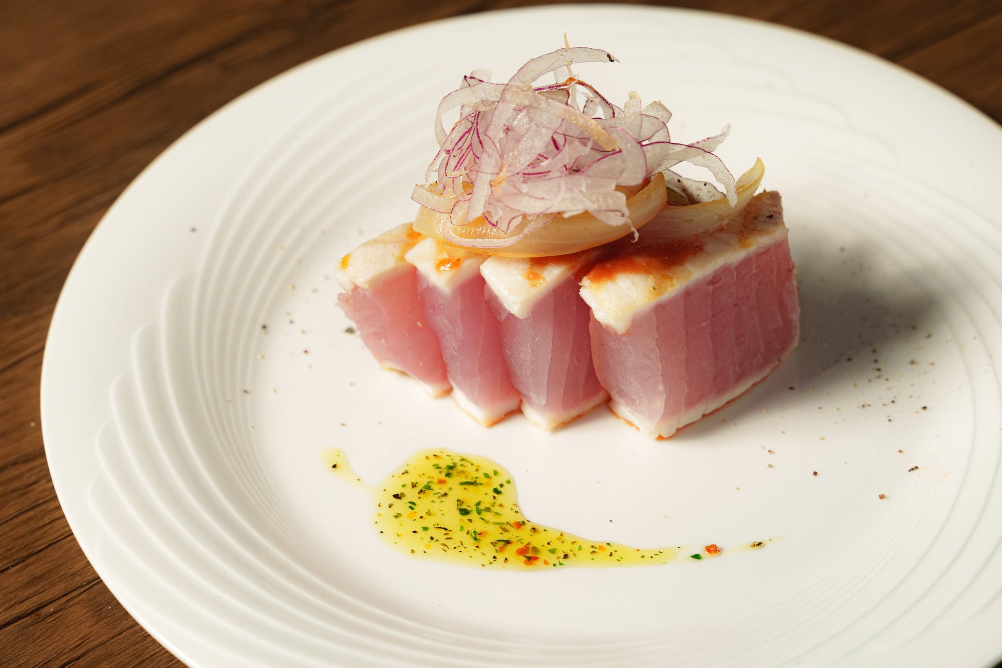 ・宮古島産シビマグロのレアソテー スモークアラビアータソース