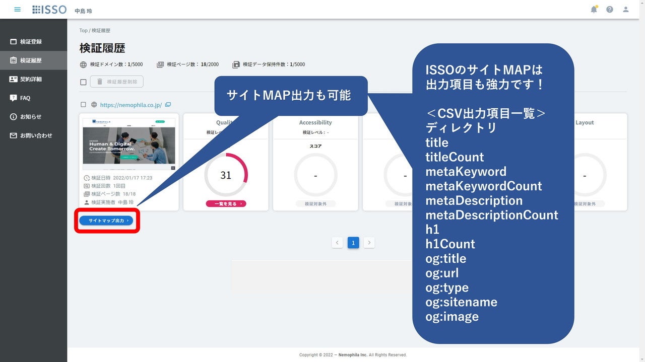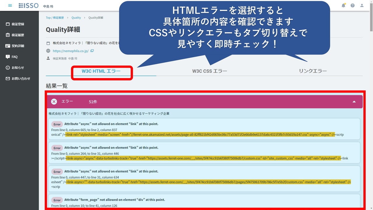 株式会社ネモフィラ(本社:東京都港区、代表取締役社長:島谷 豊)は、2022年1月17日、WEB制作現場向けのHTMLソースチェックツール「ISSO 無料プラン」を正式リリースしました。
