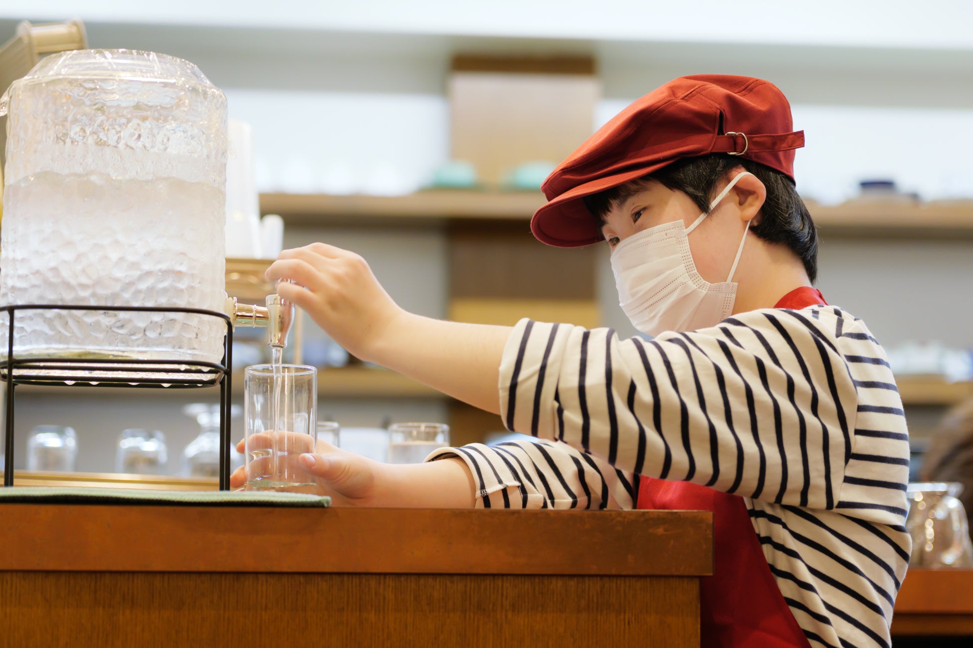 働くスタッフには知的障がいがあり、お出しするお水の量に差があったり、気分によって歌いながら接客したりしているため、「店員がきまぐれ」という言葉で接客が個性的であることをお客様にお伝えできるネーミングにしました。