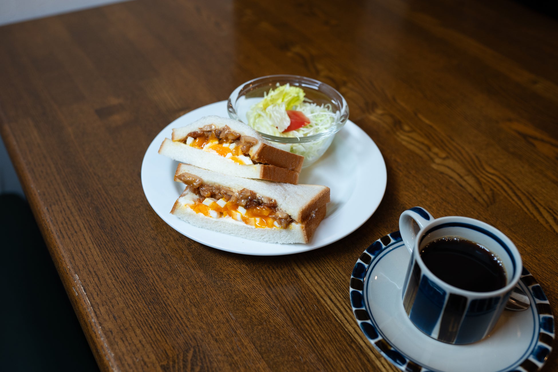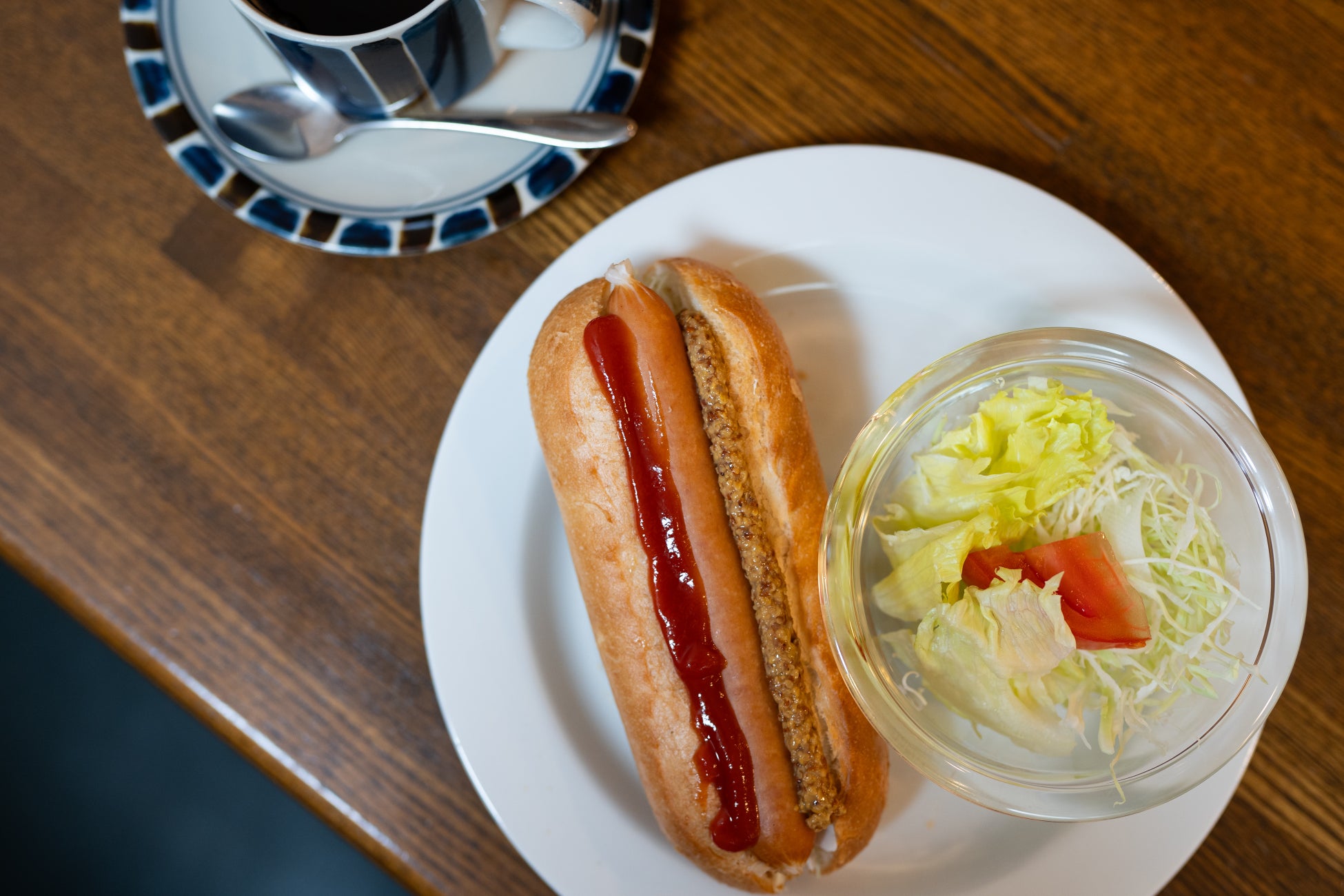 プラス200円~300円で小倉トーストやサンドイッチ、ホットドッグ、ホットケーキなどのモーニングに変更できます。オススメは「照り焼きサンド」は、柔らかいチキンに濃厚な照焼ソースをお合わせ、ゆで玉子を挟んだボリューム満点のサンドイッチで昼食にもオススメです。