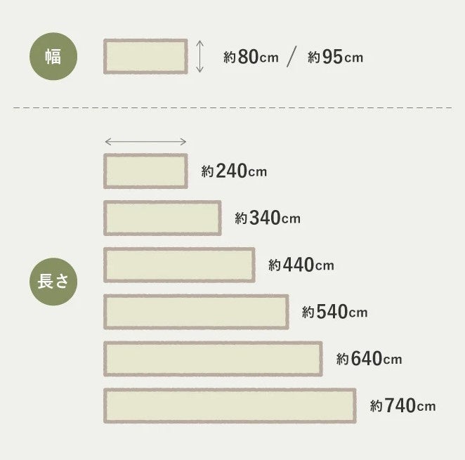 長さは、約240cm、約340cm、約440cm、約540cm、約640cm、約740cmの6種類から選べます。