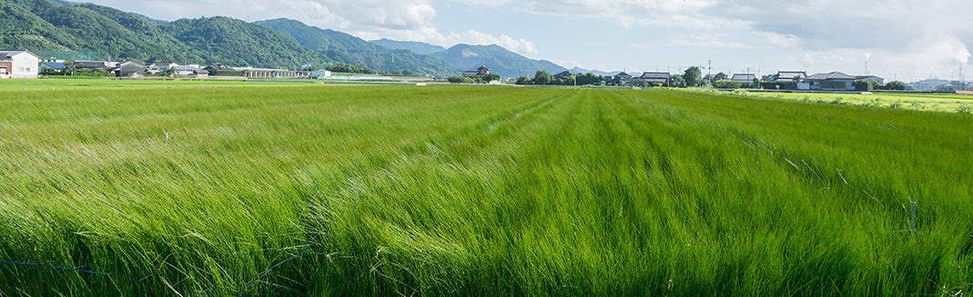 日本のい草は丈夫で耐久性にも優れていて見た目もきれい。特に熊本県産のい草は気候や日照時間、降雨、土壌など、い草の栽培に適した環境が整っているため太くコシのある、しっかりとしたい草が育ちます。