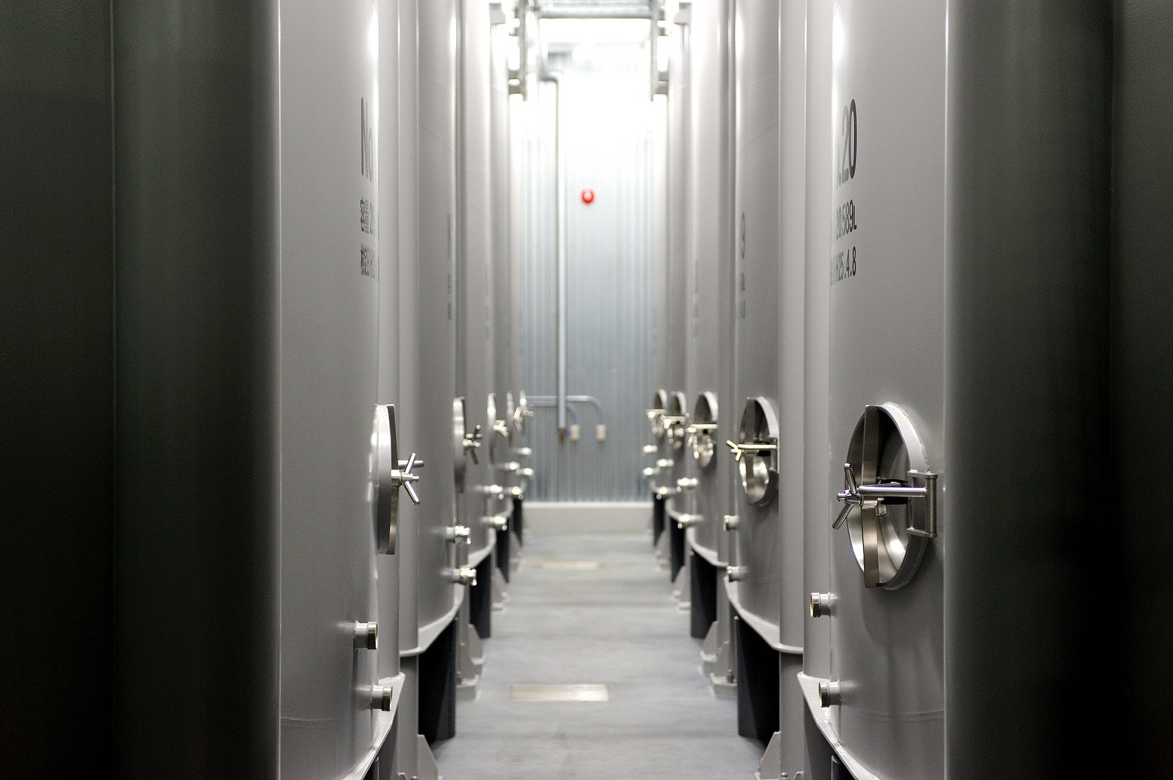 八海山雪室の雪中貯蔵庫。左奥が貯蔵タンク