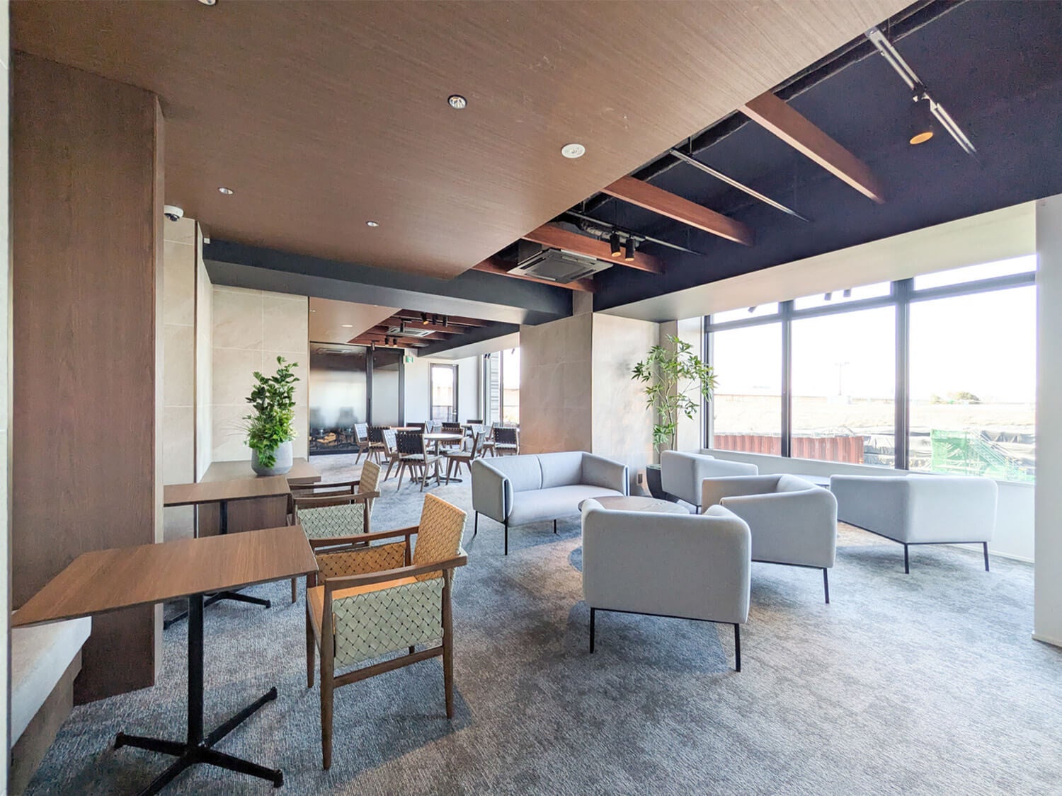 ラウンジやテラスなど、当社が運営を担う計6か所の多彩な共用施設を設置。共用部での法人登記も可能なため、プライバシーを守りながら、住居と作業場所を同施設内で完結させる「職住一体」の暮らしを実現します。また、淀川を望む開放的なテラスは、都会にいながら自然を感じられるリフレッシュ空間となっています。