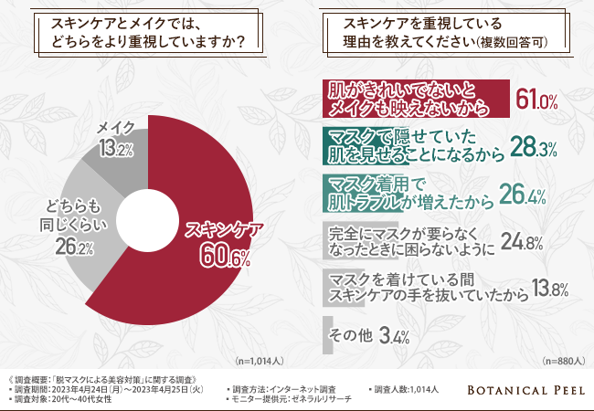 そこで今回、スキンケアブランド『BOTANICAL PEEL』(https://www.botanical-peel.com/)を展開する株式会社CREDEAは、20代〜40代女性を対象に、「脱マスクによる美容対策」に関する調査を実施しました。