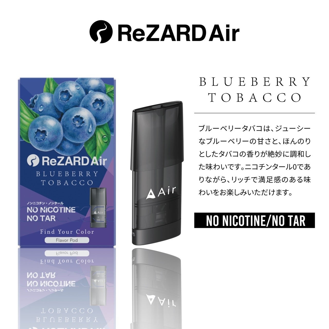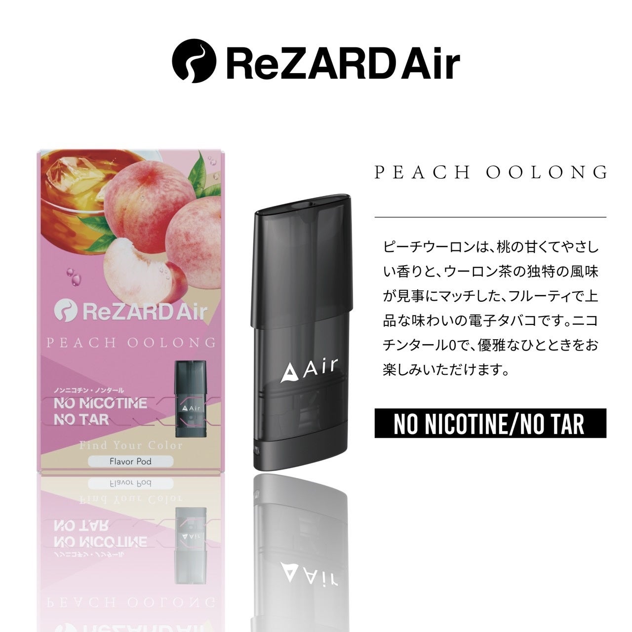 過去のAirブランドを改良し、今までにないスタイリッシュなデザイン、電子タバコ特有の加熱時に発生する焦げた匂いを直す自動修復機能を搭載。最後の一吸いまでお楽しみいただける商品となっております。