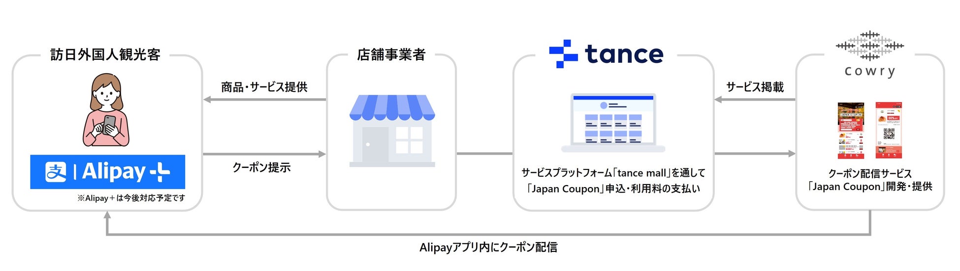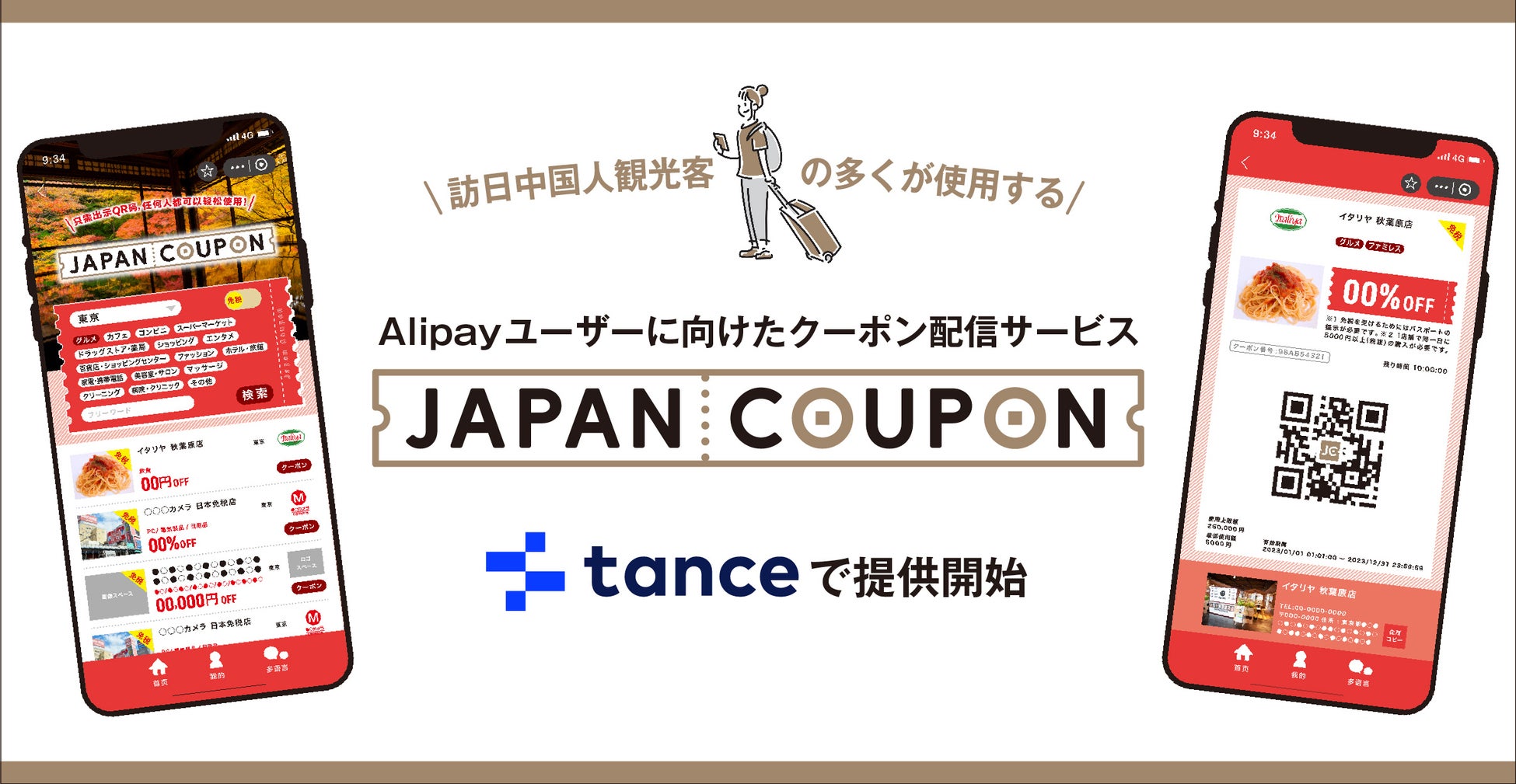 訪日中国人観光客の多くが使用するAlipayユーザーに向けたクーポン配信サービス「Japan Coupon」を「tance mall」で提供開始