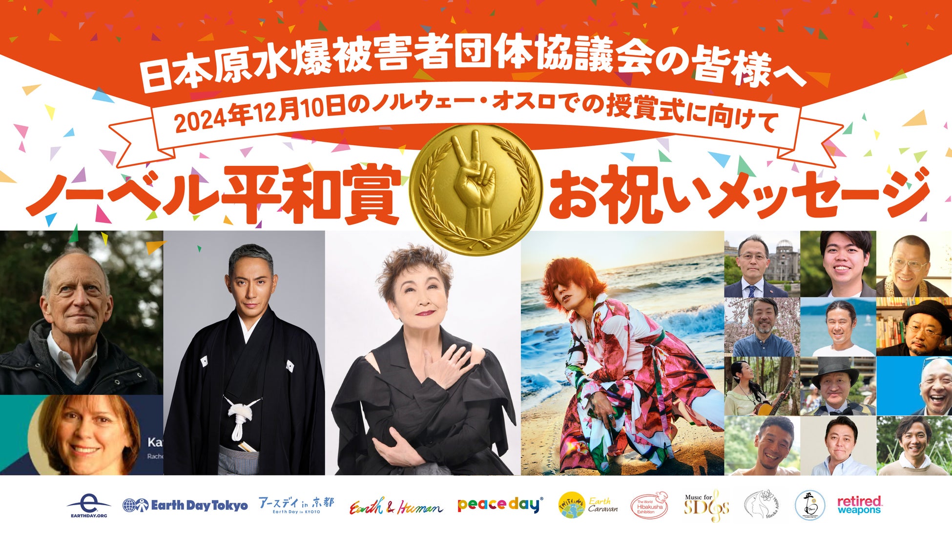 日本原水爆被害者団体協議会(日本被団協)のノーベル平和賞2024受賞を受けて、NPO法人PEACE DAYと一般社団法人アースデイ東京は、一般社団法人アースデイ・ジャパン・ネットワーク、認定NPO法人Earth&Humanなど市民団体と連携し、12/10(火)にノルウェー・オスロ市庁舎で行われる開催されるノーベル平和賞授賞式に向けて、お祝いメッセージを集めました。