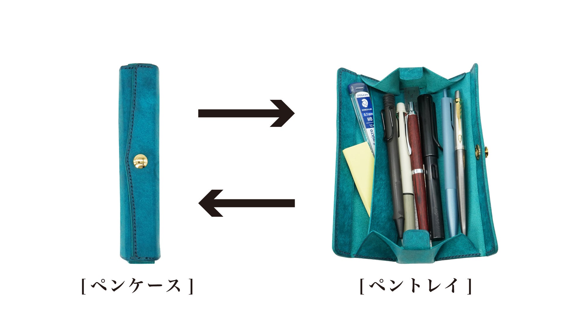 ホックを外すとガバッと大きく開き、ペントレイに変形して中身を全て一目で確認可能!見やすく出し入れがしやすい!