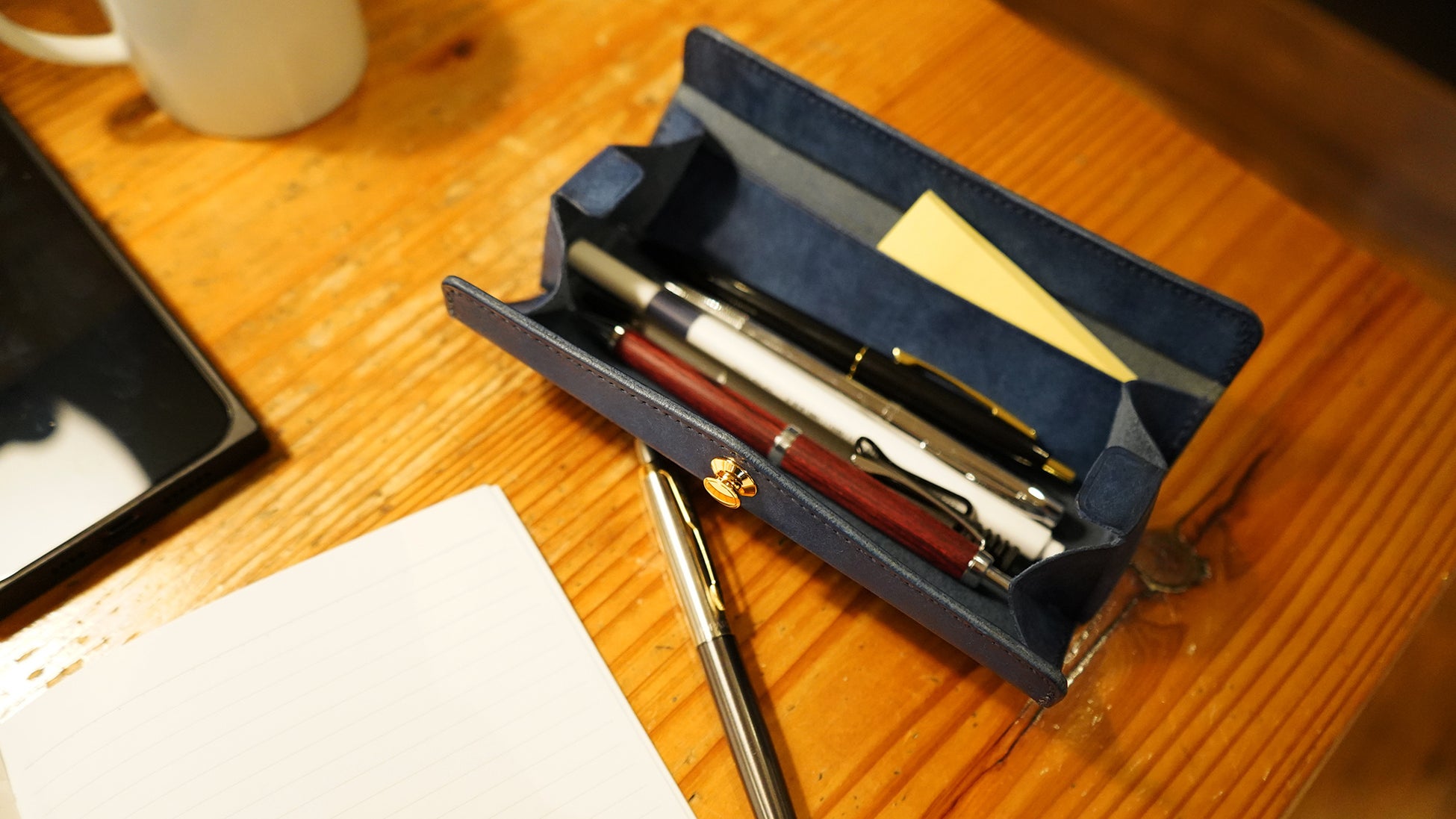 家でも外出先でもデスクにはPCやノート・手帳などがスペースを占めて、ペンケースは端っこに追いやられてしまいがち・・・