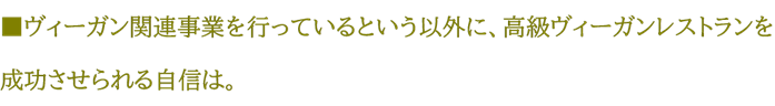 その一つの方法としてこの度、世界で最も高級なフレンチレストランに勝るとも劣らない、超一流のおもてなしを行うヴィーガンレストランをオープンさせていただきたいと活動を始めました。