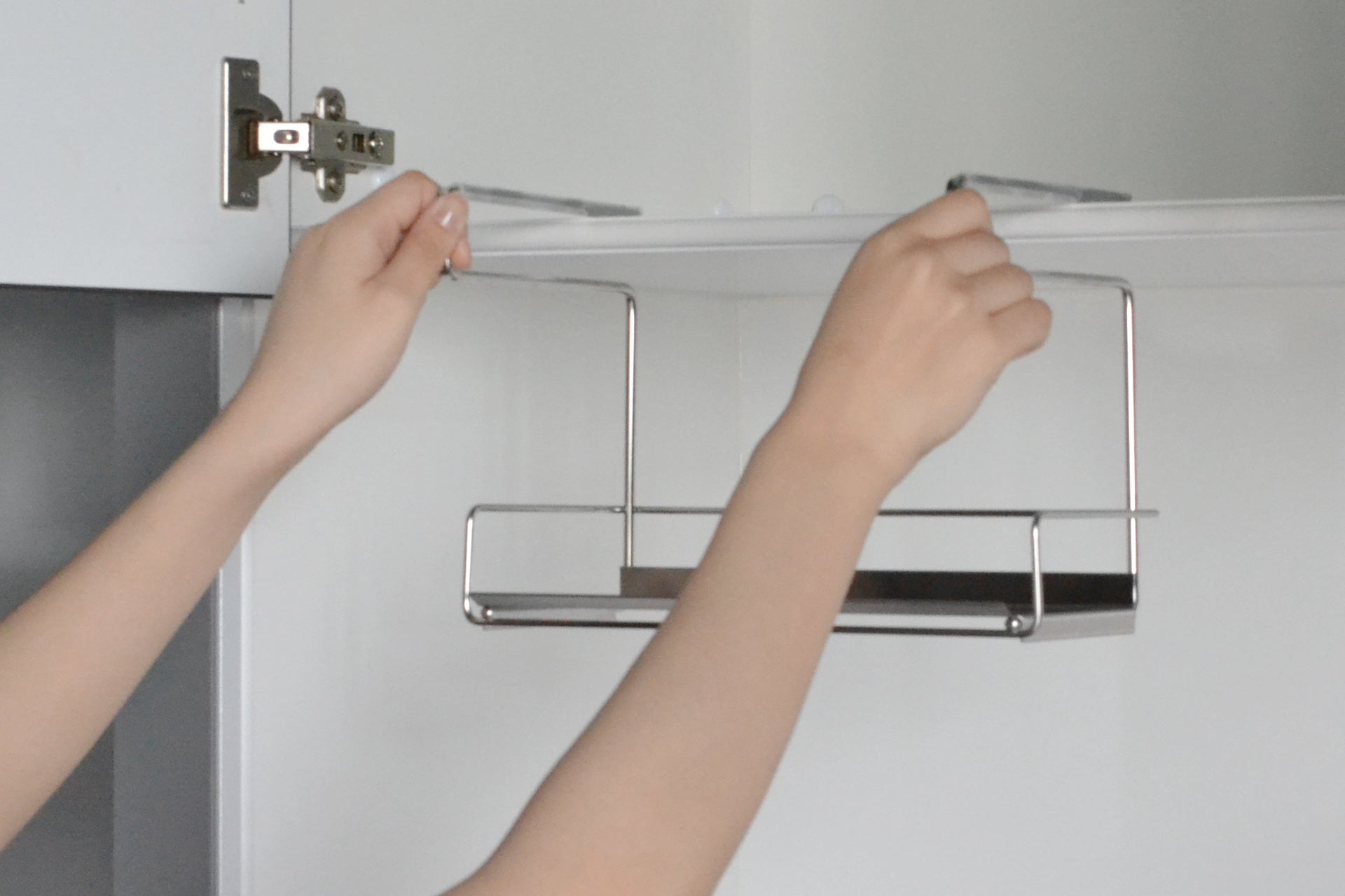 ・コの字の部分を吊り戸棚に差し込むだけなので、面倒な設置作業がいりません。