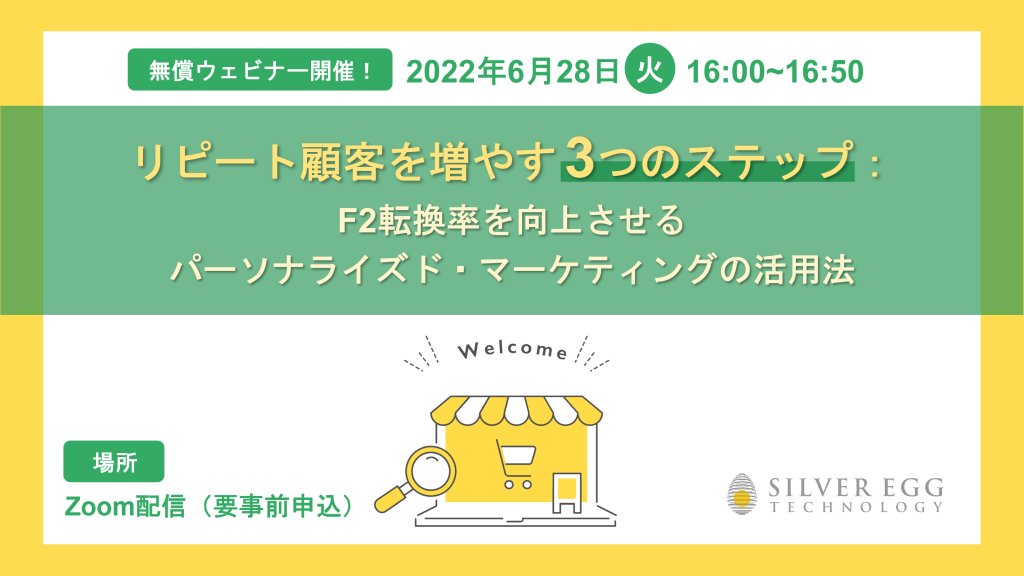 シルバーエッグ・テクノロジーは、2022年6月28日(火)にウェビナー「リピート顧客を増やす3つのステップ:F2転換率を向上させるパーソナライズド・マーケティングの活用法」を開催します。