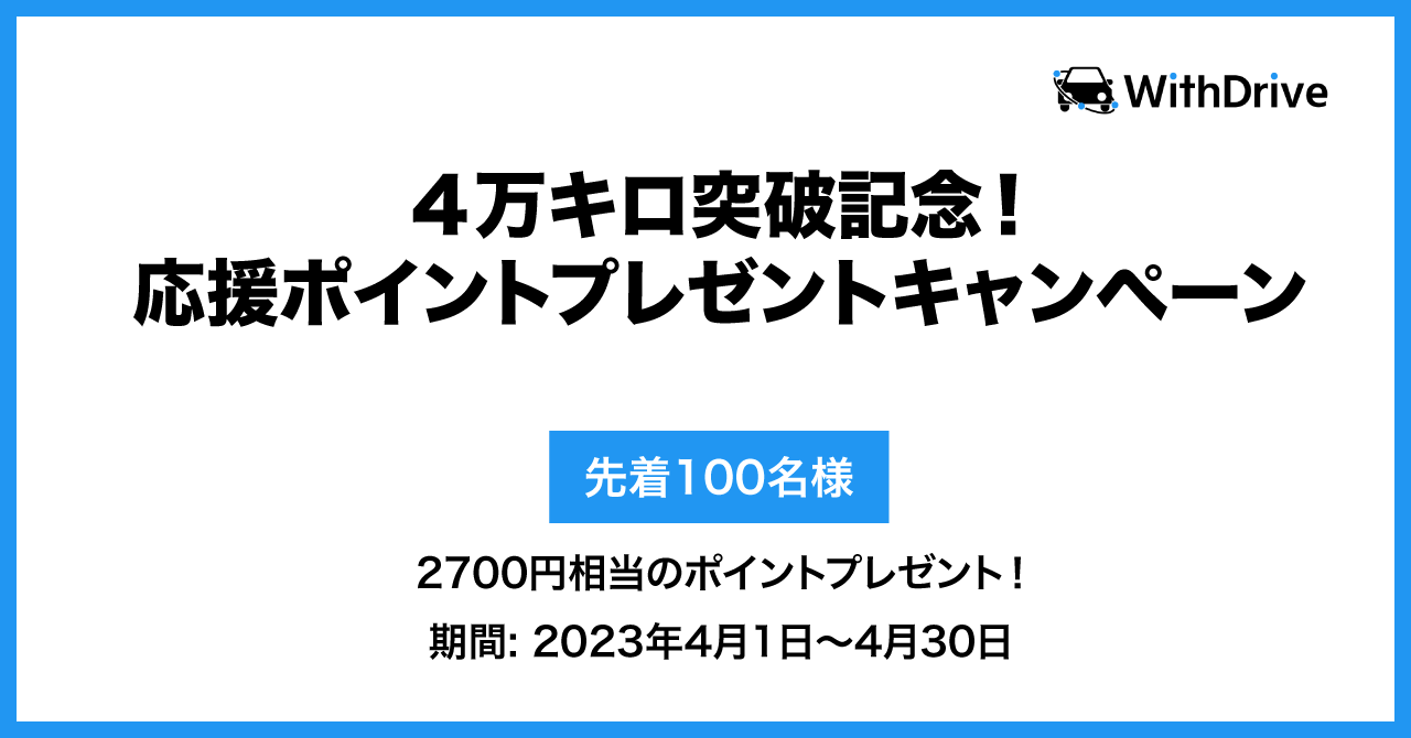 キャンペーン名:「4万キロ突破記念!応援ポイントプレゼントキャンペーン」