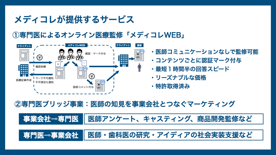 事業内容:メディコレWEB(専門医オンラインチェック&コメント)