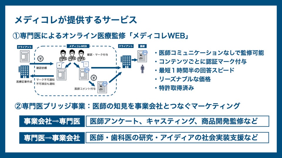 ①「メディコレWEB」:医療・ヘルスケア情報の監修&制作DXサービス