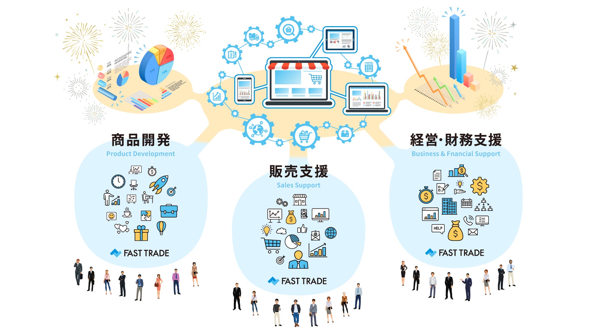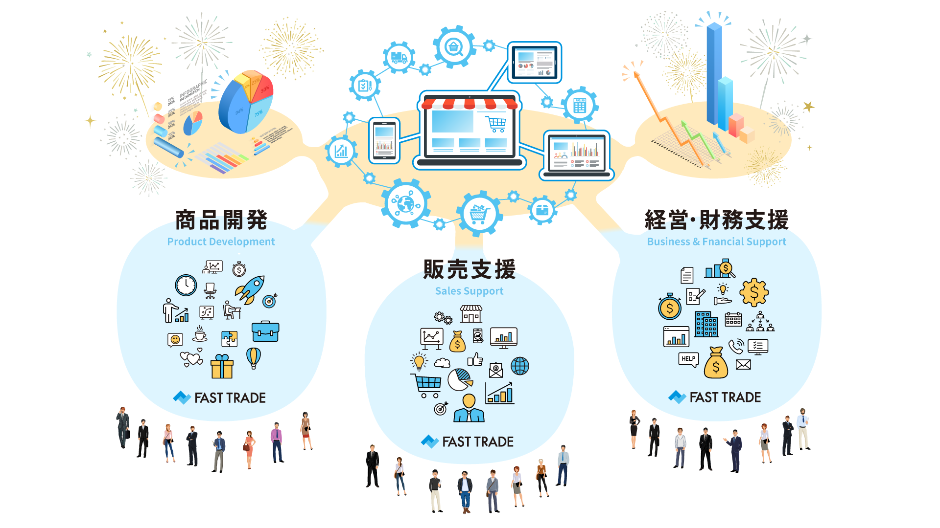 お客様とともに成長することを目指している当社では、何よりもお客様の成長につながることを第一にサービスをご提供しています。EC事業とひとことで言っても、そのお悩みは千差万別。商品開発、販売支援、経営・財務支援にいたるまで、お客様ひとりひとりの課題を解決するお手伝いをいたします。