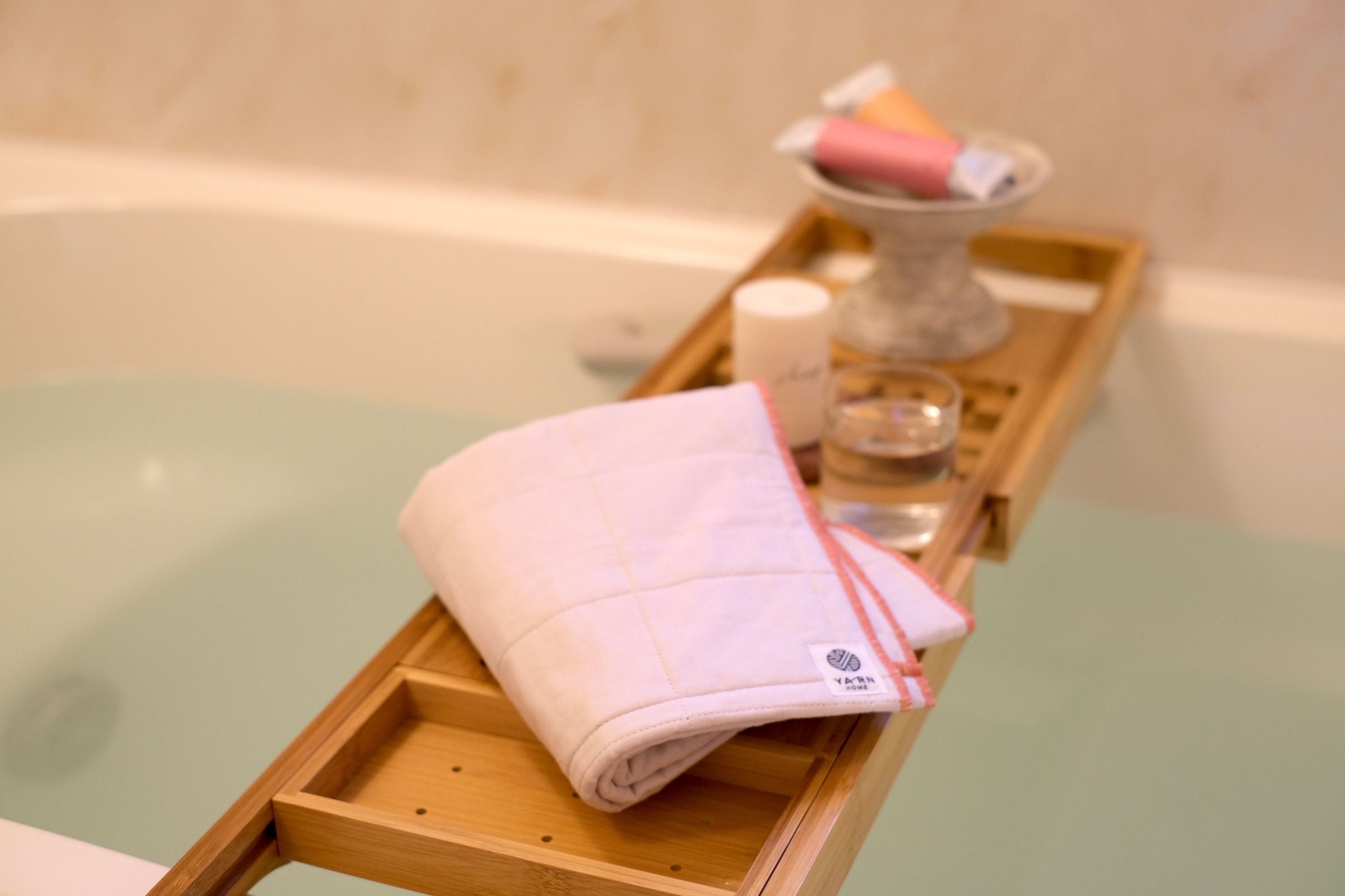 エッセイ付き入浴剤「HAA for bath」と、YARN HOMEのタオル(HAAオリジナルカラー)のセット