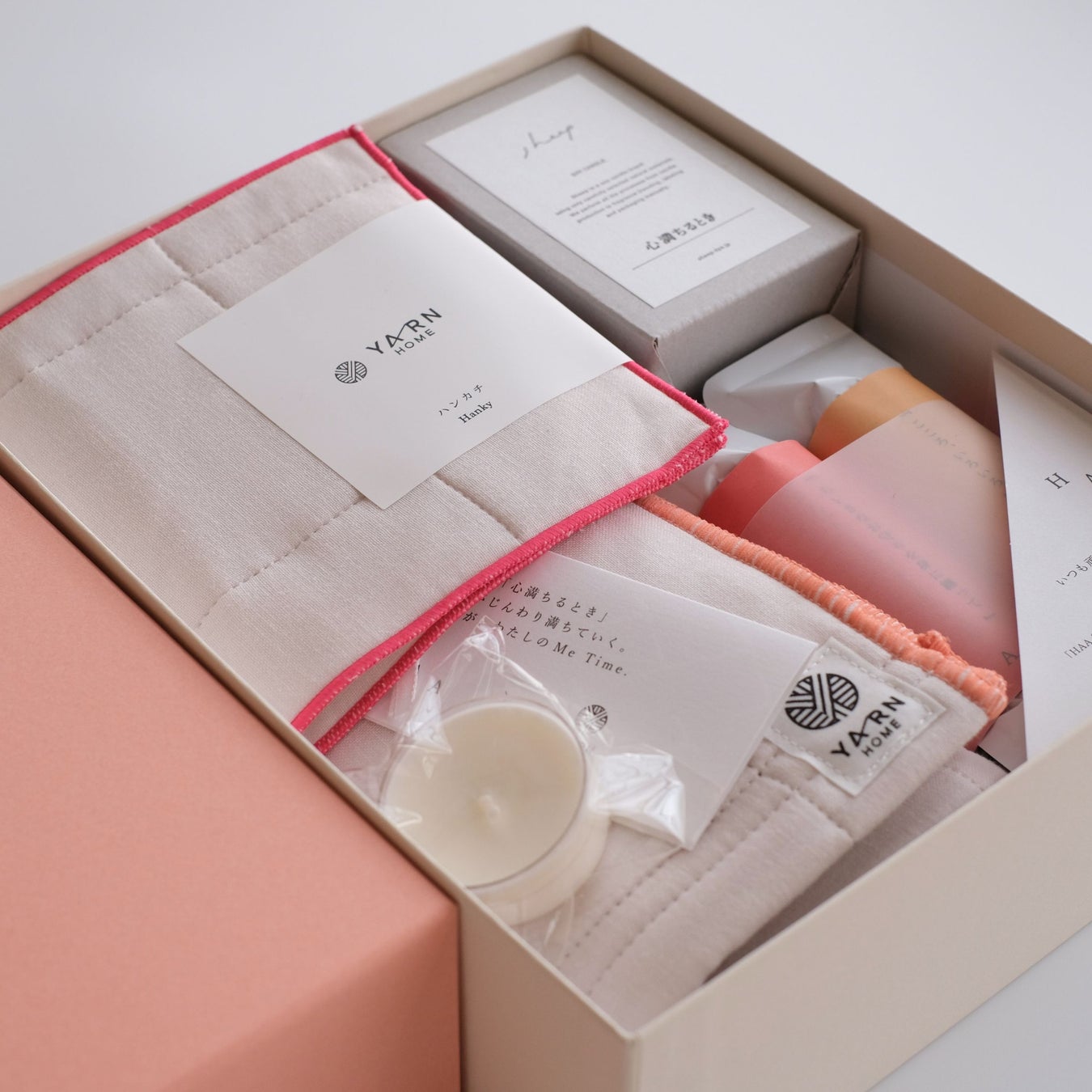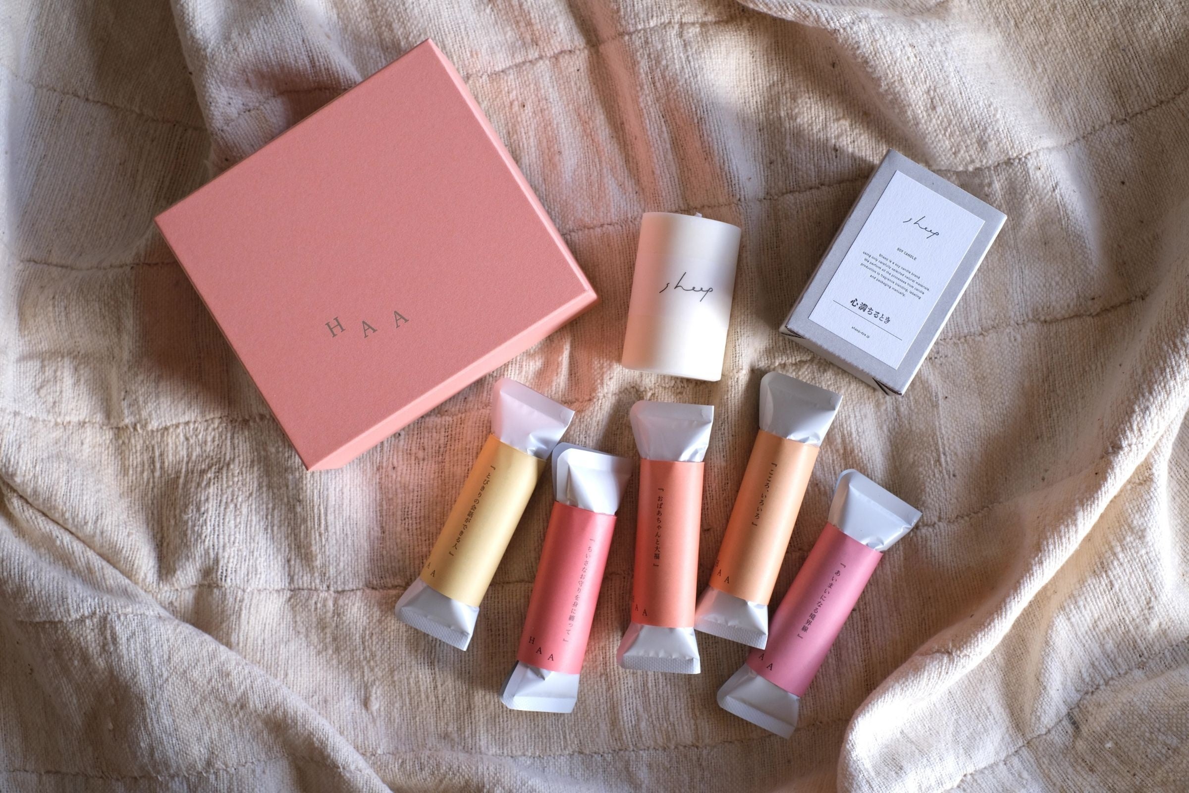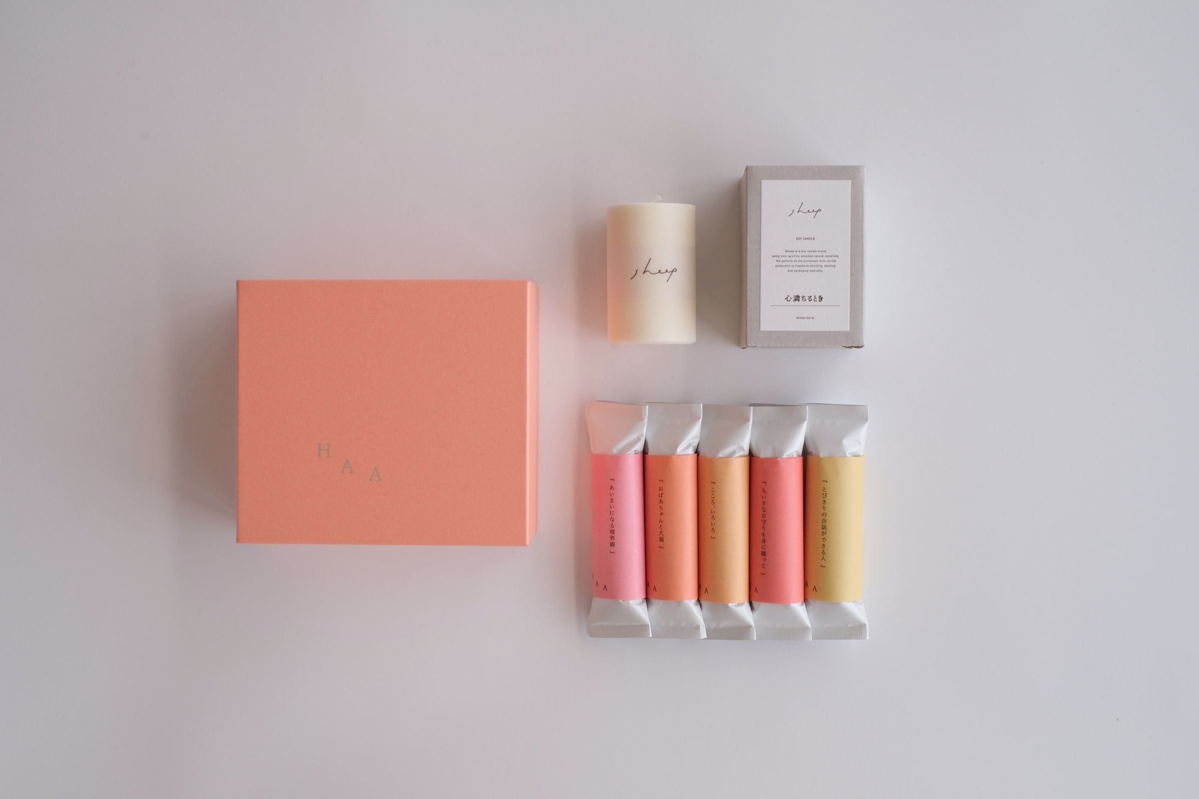 日々の疲れを癒し、贅沢なひとときを贈る、特別なギフトボックスを数量限定で作りました。HAAのオリジナルの香りが漂うsheepのアロマソイキャンドル、YARN HOMEのHAAオリジナルカラータオル、そして心がじんわり満ちていくエッセイに包まれた入浴剤がセットに。