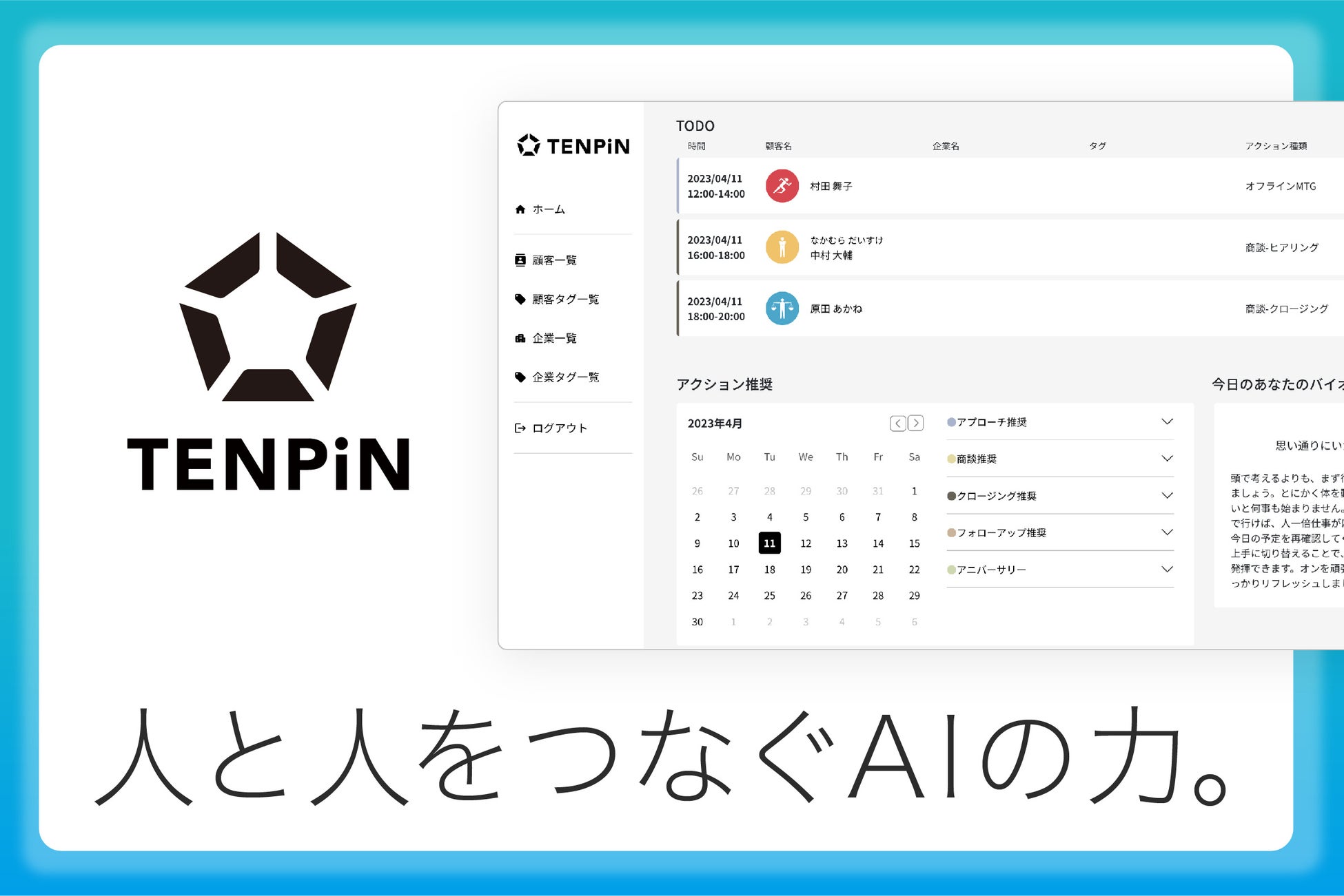 「うまれつきの性質・才能」という意味を持つ【TENPiN(天稟)】は顧客のパーソナリティを理解し、営業力を最大化するクラウドサービス