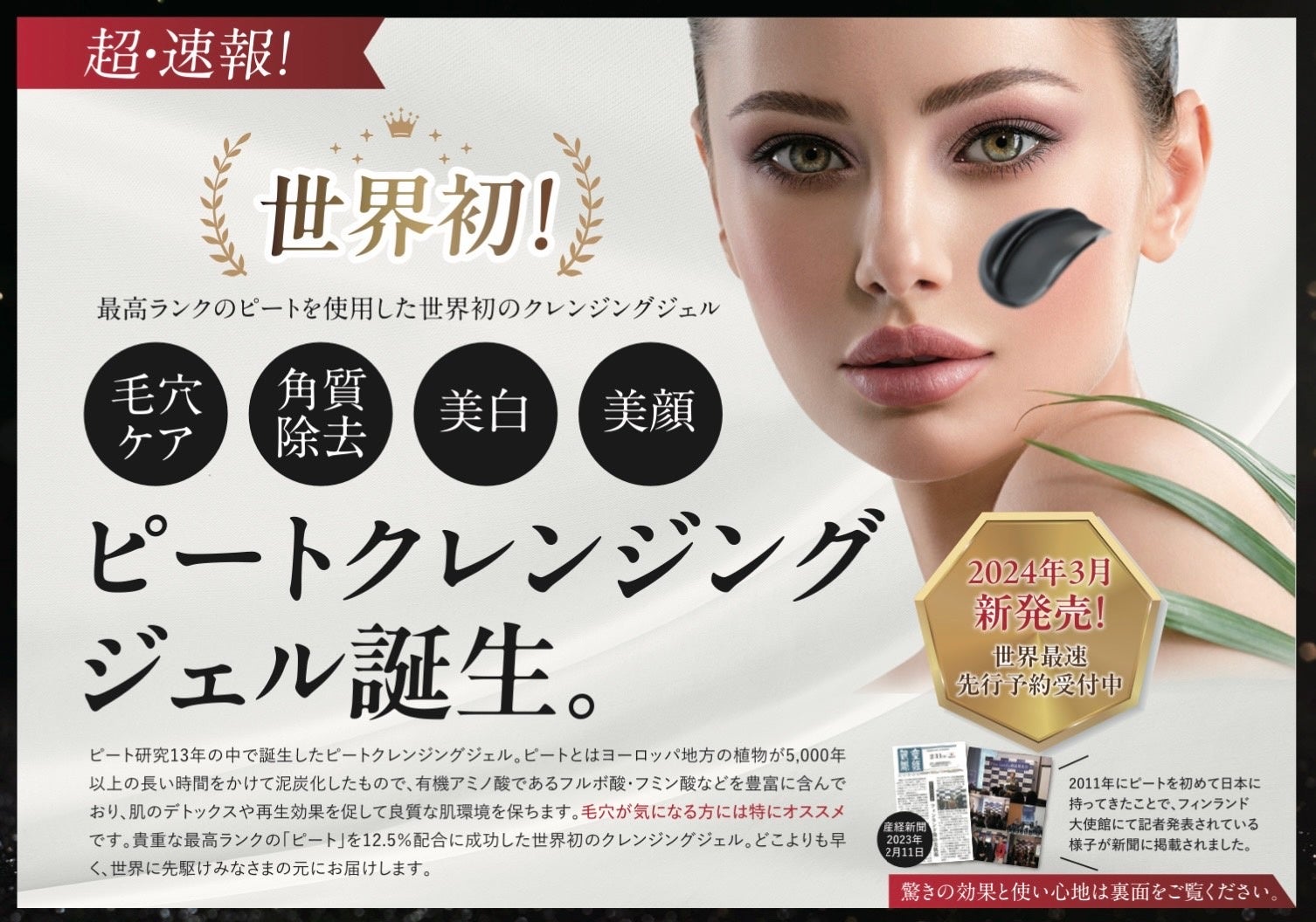 そして今回、新たに世界で初めて最高ランクのピート(泥炭)を使用した「ピートクレンジングジェル」を個数限定で新発売し、既に会員限定の先行販売だけで⅓が完売するなど好調な出だしとなっています。