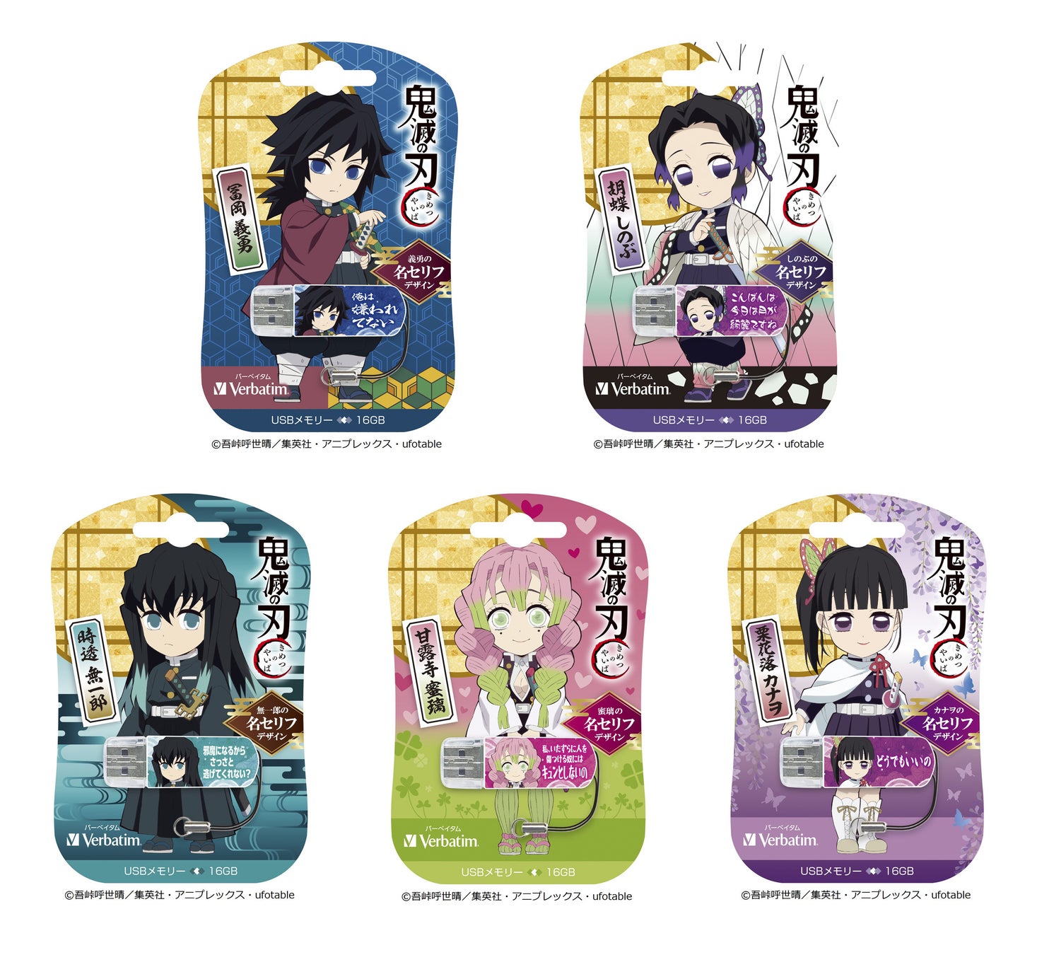 Verbatim Japanは、テレビアニメ「鬼滅の刃」の登場キャラクターをプリントしたUSBメモリー「名セリフデザイン」シリーズ第二弾、5種類を新たに発売します。
