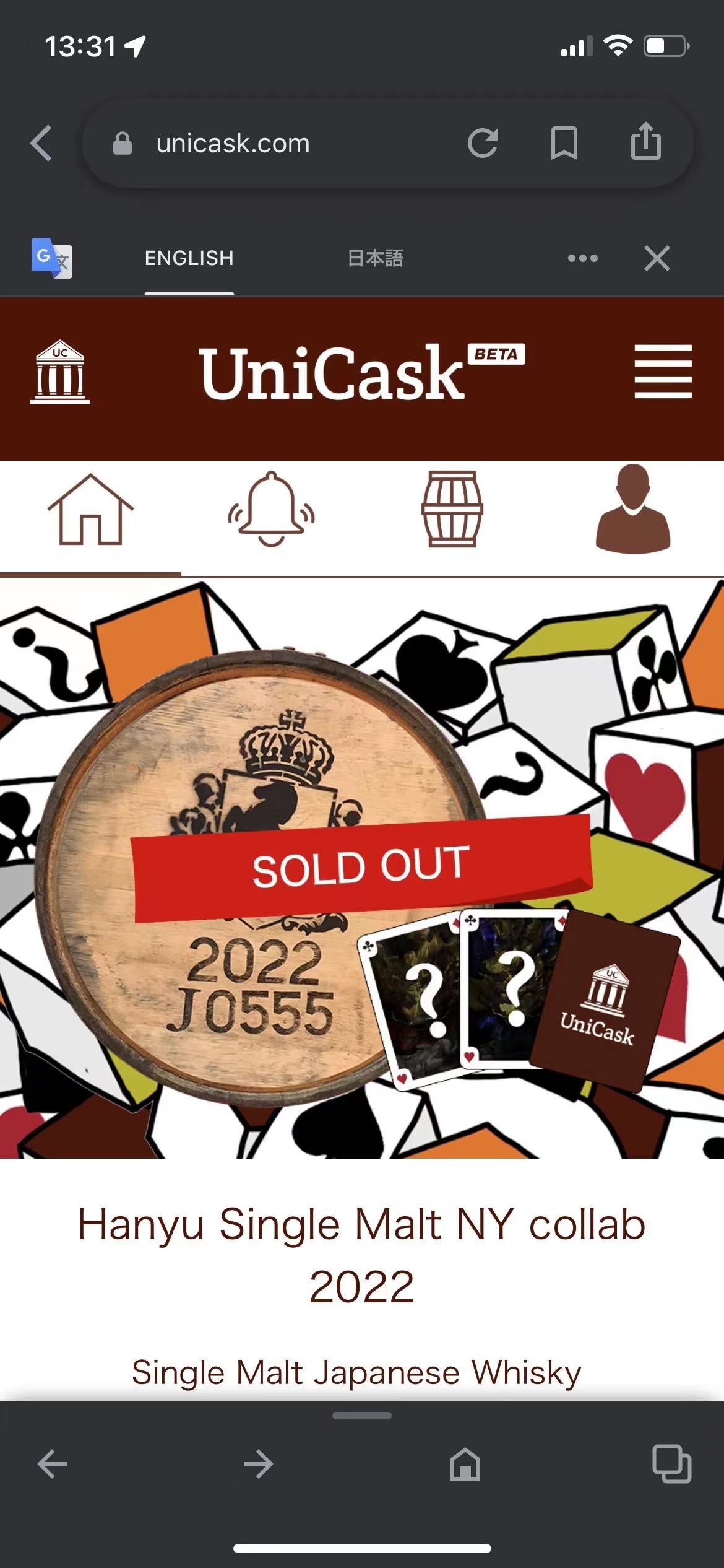 UniCaskのNFT第5弾(NY_コラボ)、シングルモルトジャパニーズウイスキー 「羽生」 2022年のNFT約500万円分が一般販売開始から90分で完売!