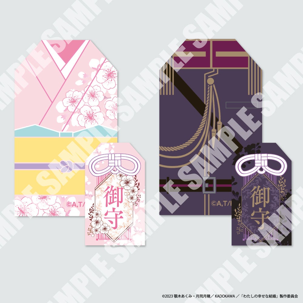 美世と清霞の衣装をイメージしたデザインになります。美世の〝かわいさ〟と清霞の〝かっこよさ〟は御守りでも相性バッチリ。2つの御守りを並べると夫婦守りとなります。(1種類でもおわかちします)