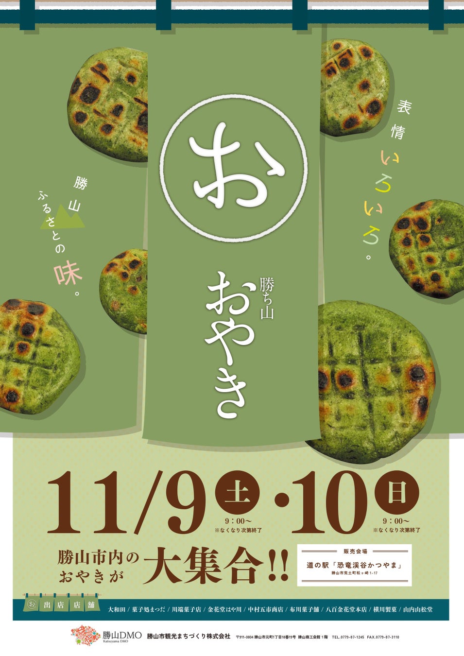 勝山市観光まちづくり株式会社(所在地:福井県勝山市、代表取締役:宮塚和彦、略称「勝山DMO」)は、指定管理施設である道の駅「恐竜渓谷かつやま」において、2024年11月9日(土)・10日(日)の両日において「勝ち山おやきまつり」を開催します。